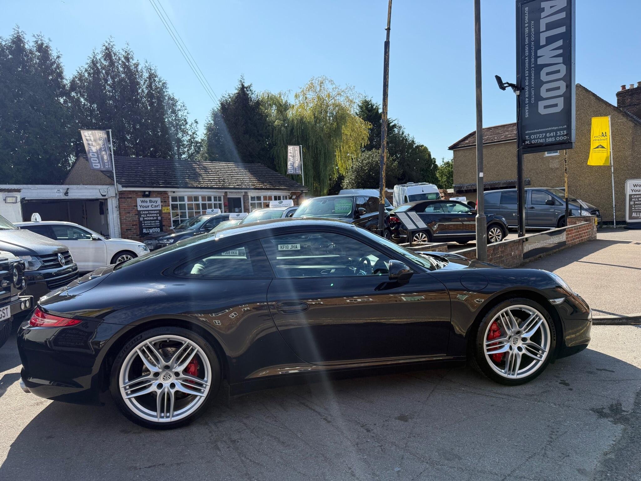 Allwood of Sandridge are exceptionally pleased to be able to bring to market this stunning condition, garaged for all its life, full history 1 owner from new Porsche 911 3.8 991 Carrera S PDK edition. In perfect Basalt black metallic paintwork with a full black leather interior to match. This one owner car has been meticulously cared for and the perfect service record consist of Porsche main dealer through to 2021 at 24,000 miles then followed by highly rated JAZ Porsche specialists with the last service having just been completed at 31000 miles. The current MOT runs through till 3 January 2026 but of course will come with a new 12 months MOT for the next owner. The vehicle has an exceptional build spec of which the full details are listed in the pictures, highlights include, PCM navigation, Sports Chrono package pls, 20 inch sport design alloys all in perfect condition with matching Michelin pilot sport 4 tyres, 14 way elec seats, heated seats, park assist and much much more. 2 keys are also equipped with the car. We strongly believe if your looking for the perfect 911 this one needs to be on your viewing list! Fully HPi clear free from accidents and finance with confirmation of the low miles and owners. The private plate will be retained and return to LO62 JYD