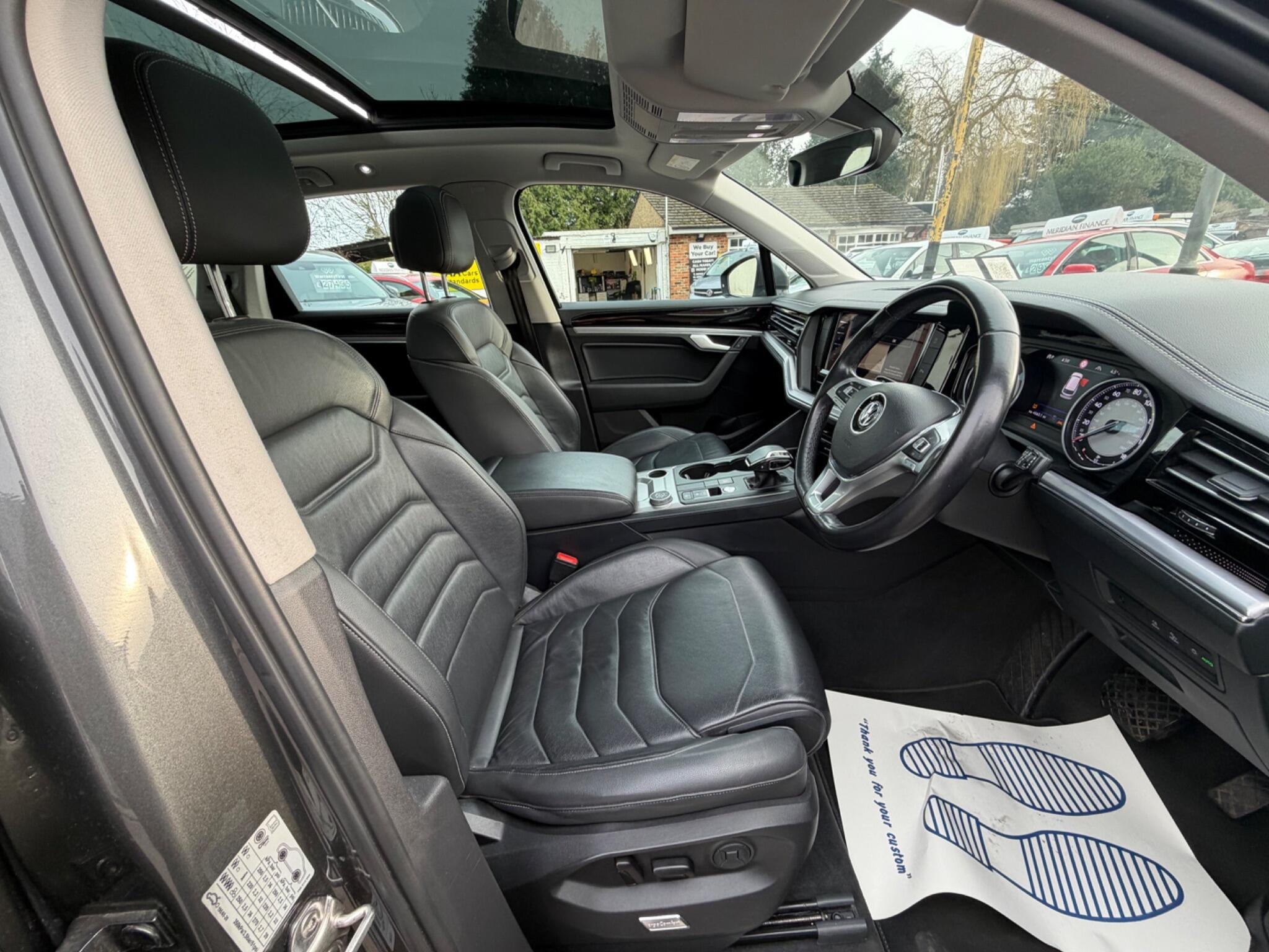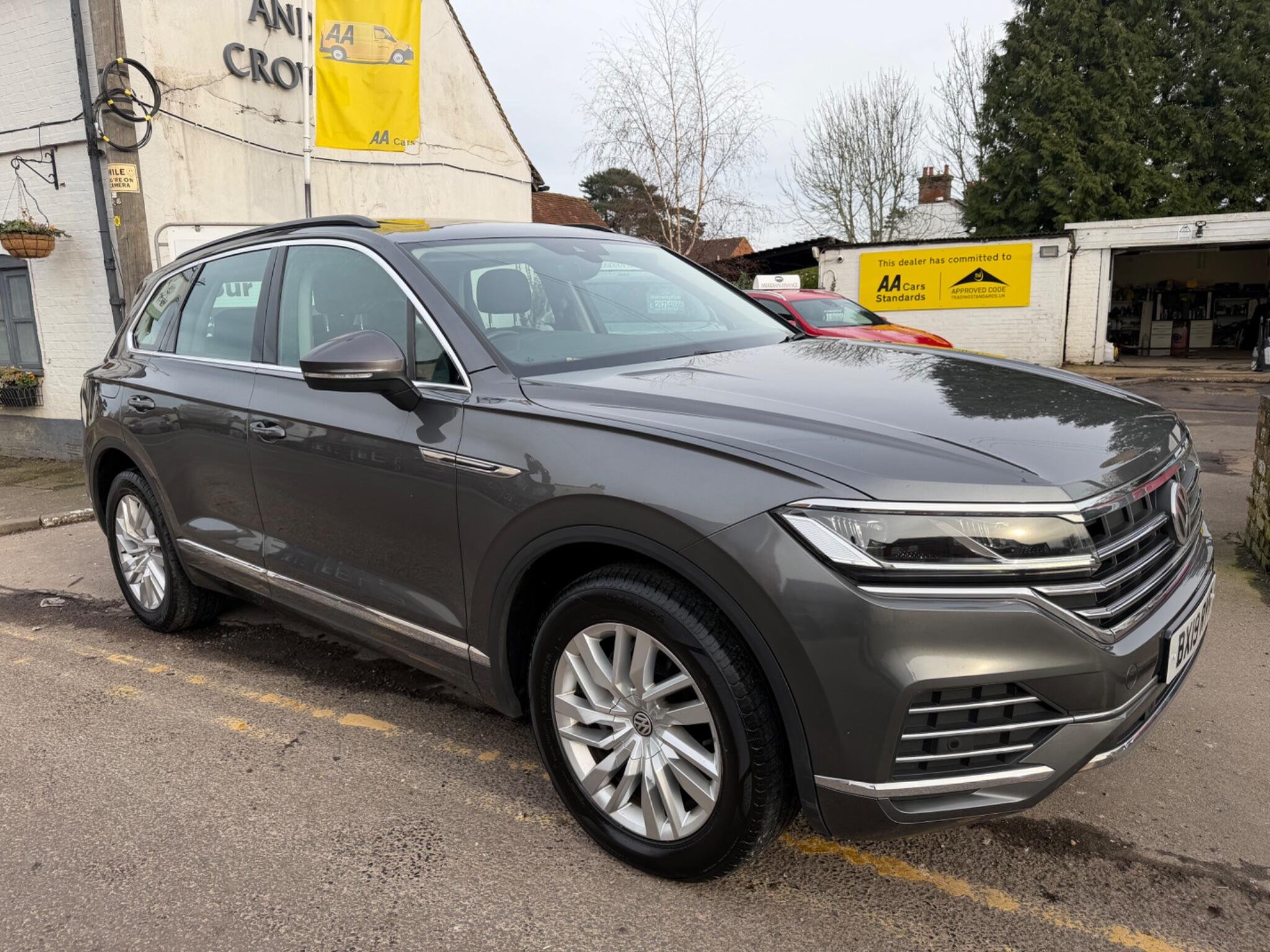 This fantastic looking Volkswagen Tourareg has just landed on our forecourt, purchased locally and is an excellent example. It comes with nice history the first 3 services carried out by Vw. There is also a full service carried out at 65k in April 25. We will give this car a service before sale. It also will come with a fresh mot. It comes with 2 keys. It comes with a lovely specification with panoramic roof, leather black seats, dab radio, foldaway mirrors, heated seats, dual zone climate control, adaptive cruise control, electric seats, front and rear parking sensors, navigation, car play and so much more.